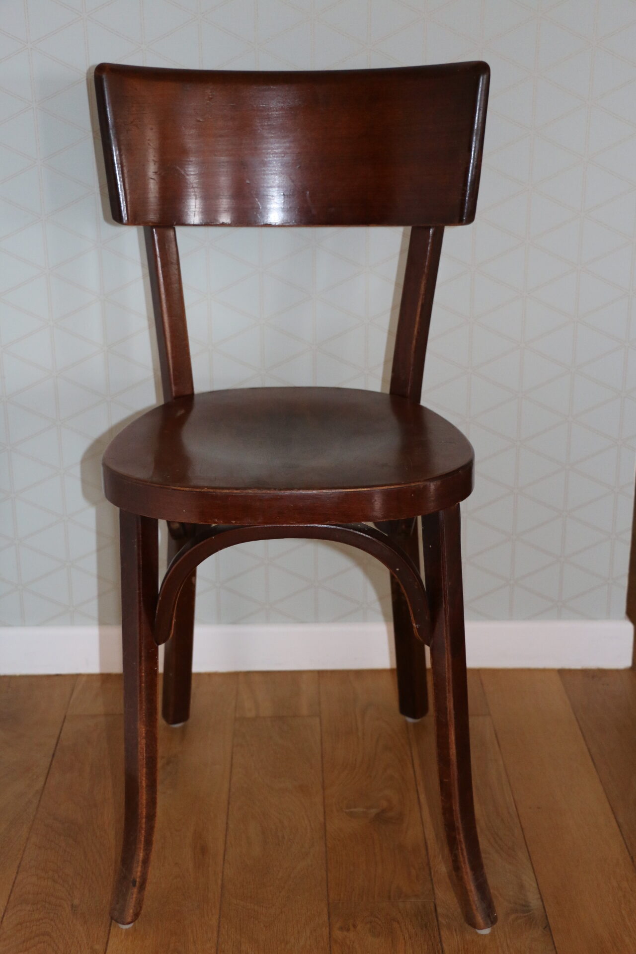 Chaise Baumann dos large N°30 hêtre foncé datant des années 60
