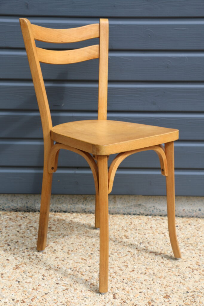Série de cinq chaises Baumann N°19 hêtre clair datant des années 50/60