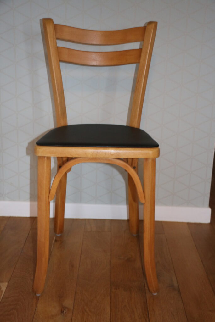 Paire de chaises Baumann N°19 hêtre clair assise skai noir datant des années 50/60