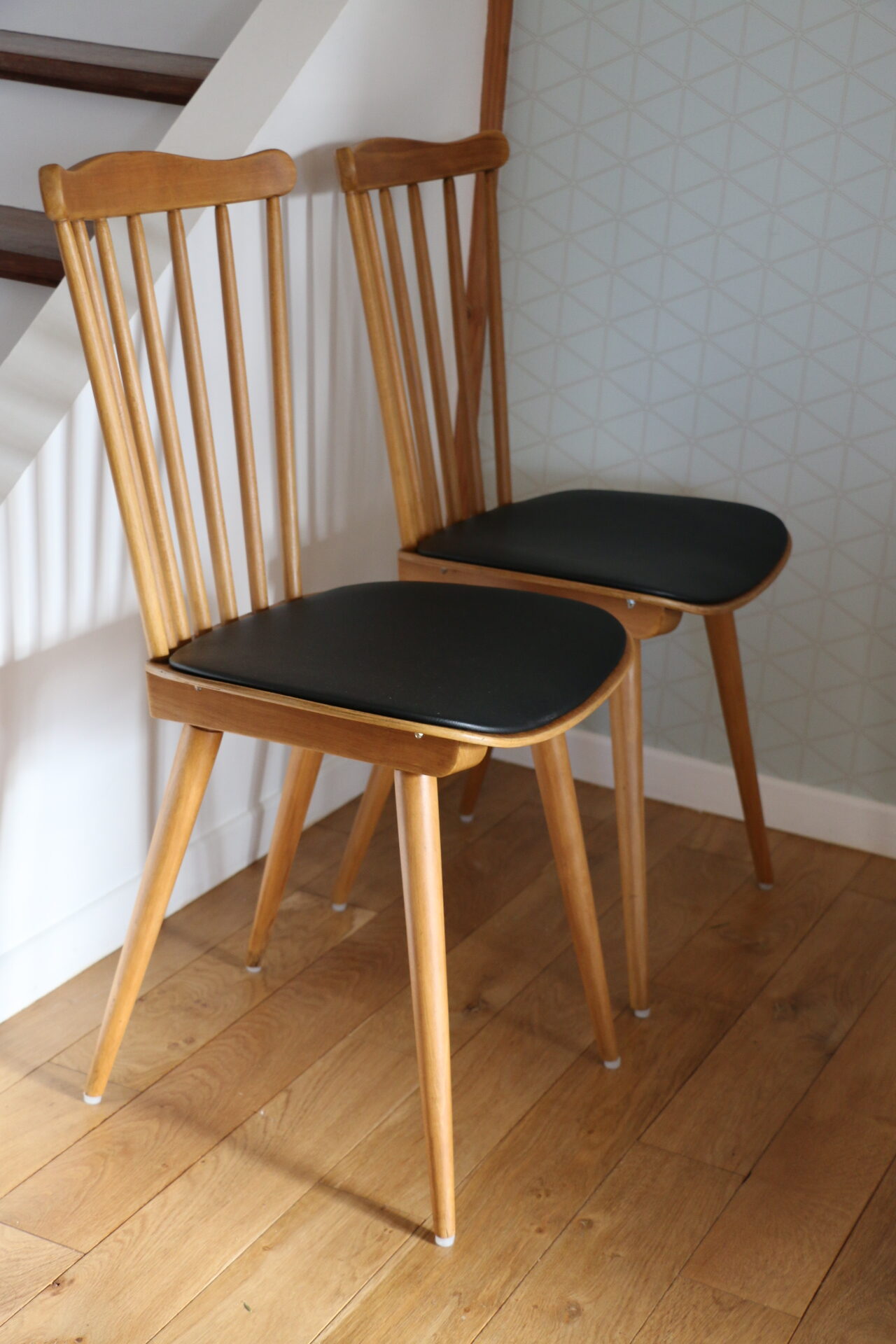 Chaise BAUMANN V5 skaï noir hêtre clair datant des années 60