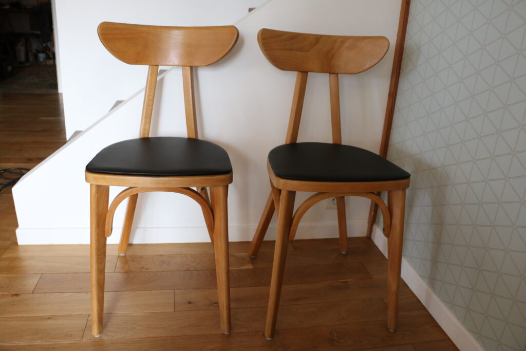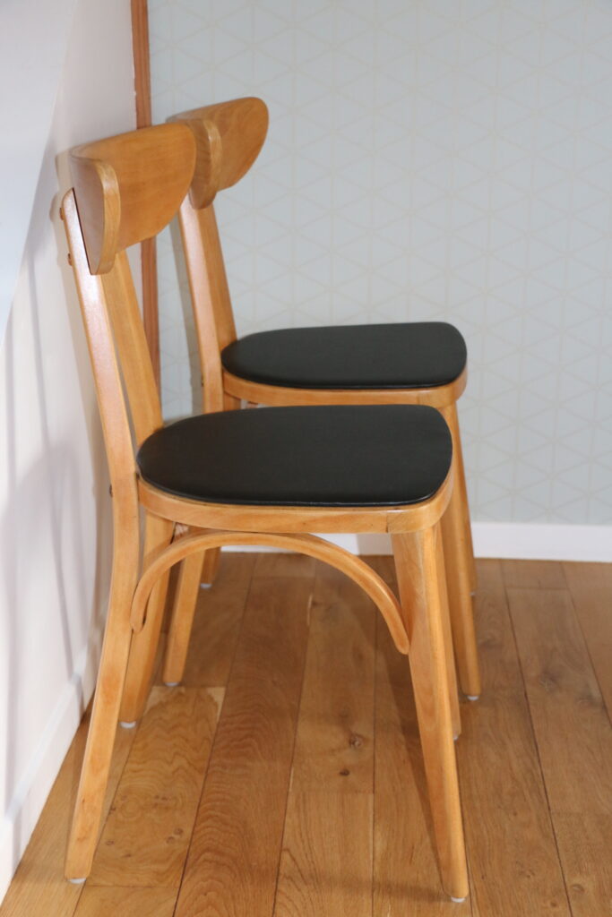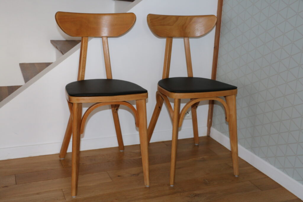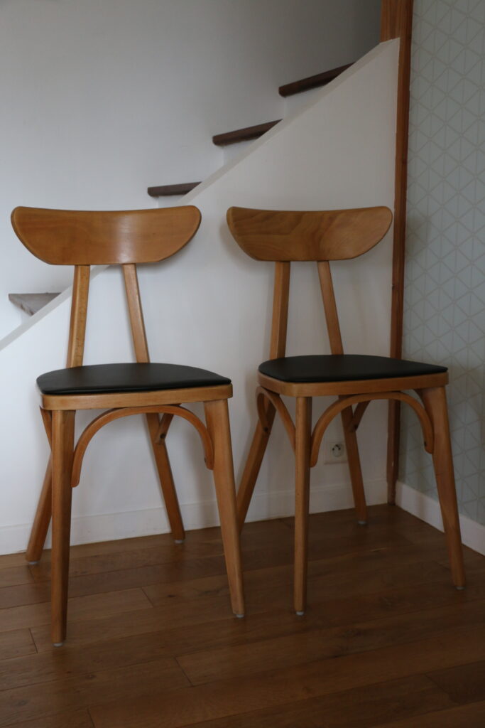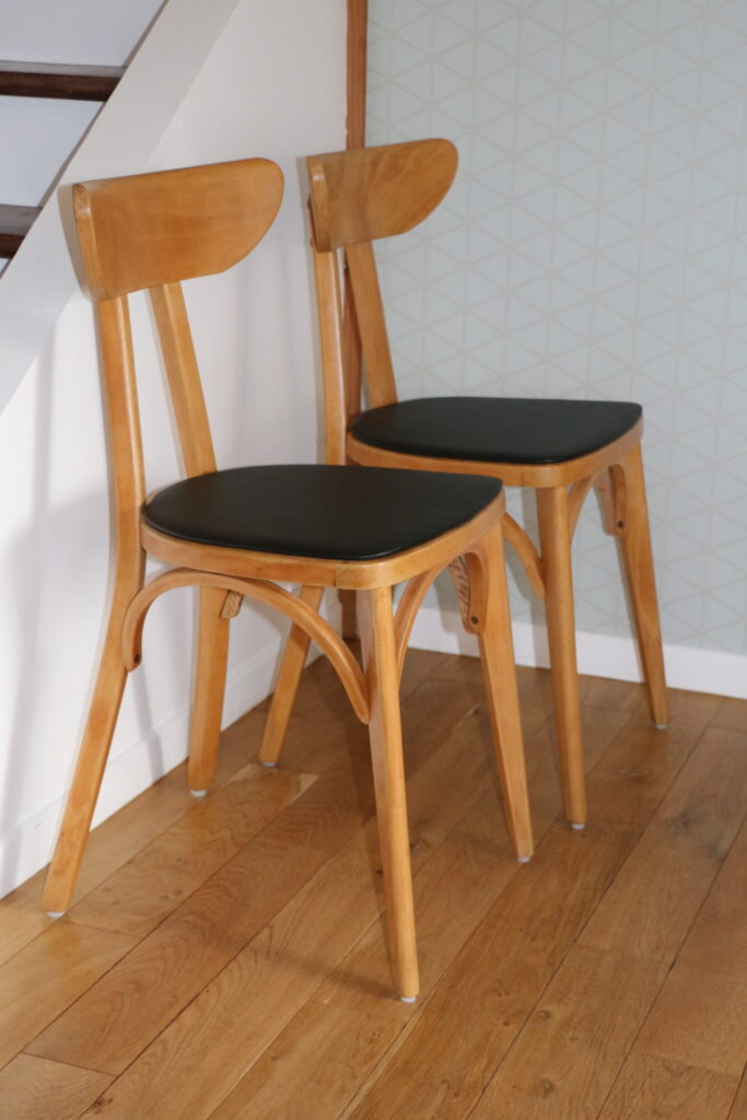2 chaises Baumann Jurasiège hêtre clair skaï noir