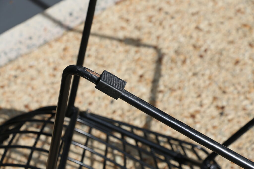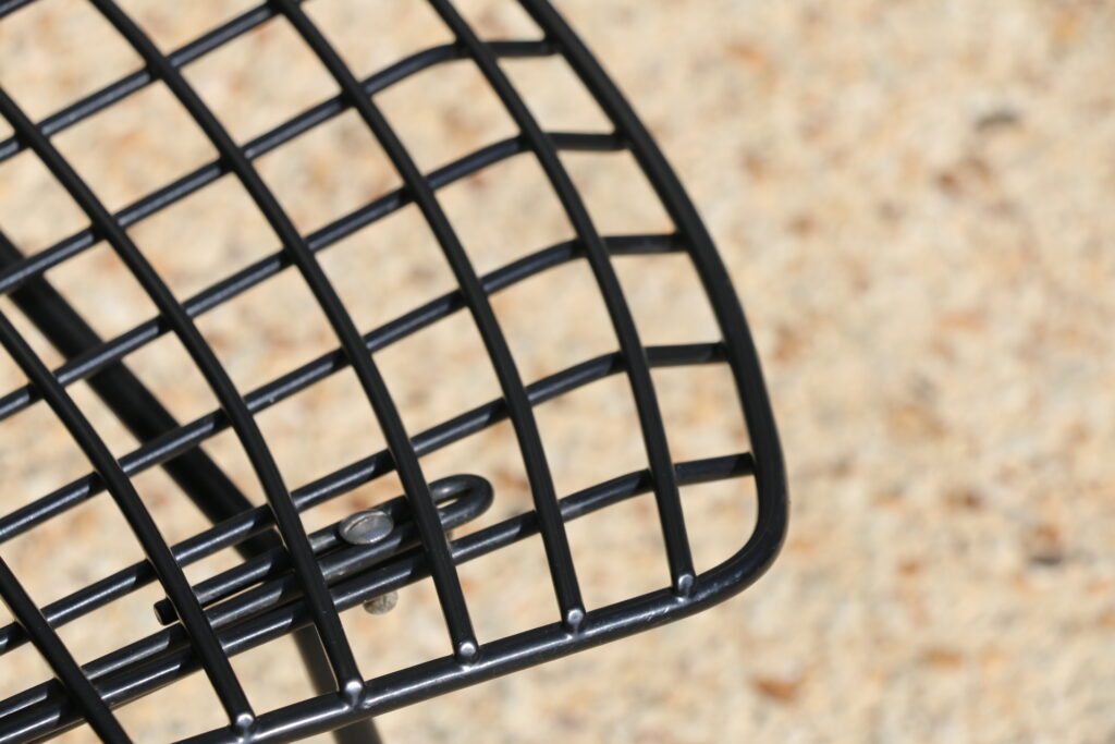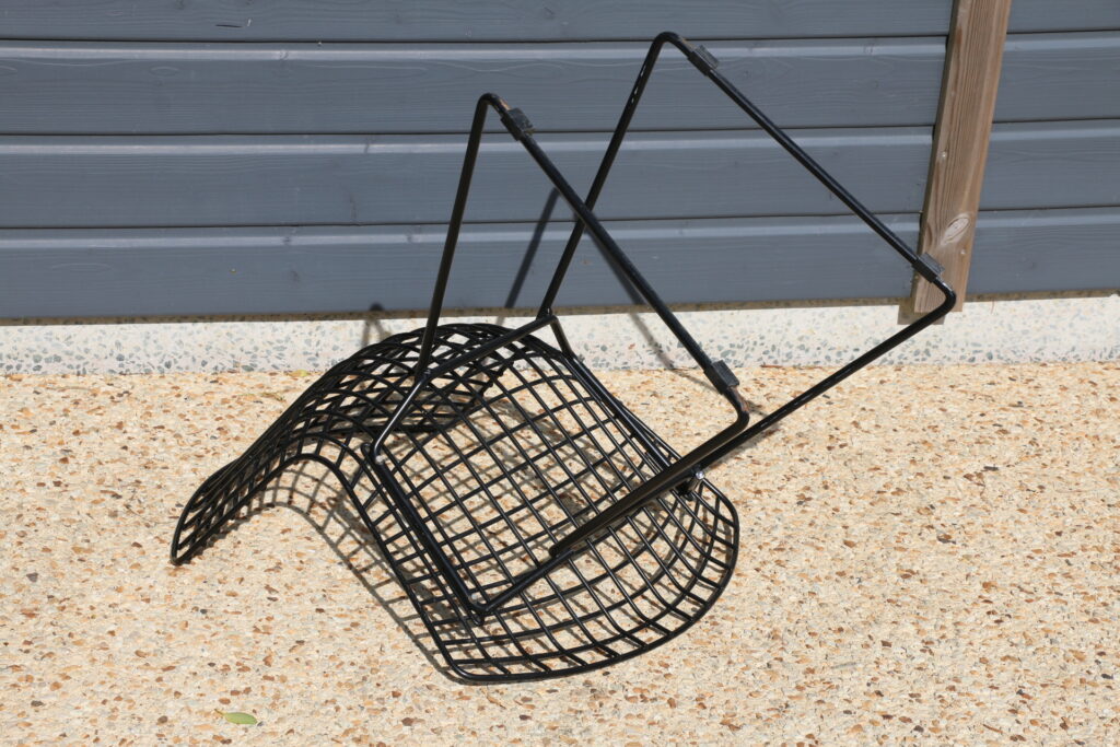 Structure en maille de fil d’acier cintré, soudé puis recouvert de rilsan noir. Ce modèle est vendu sans galette.