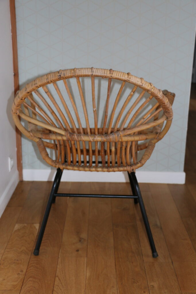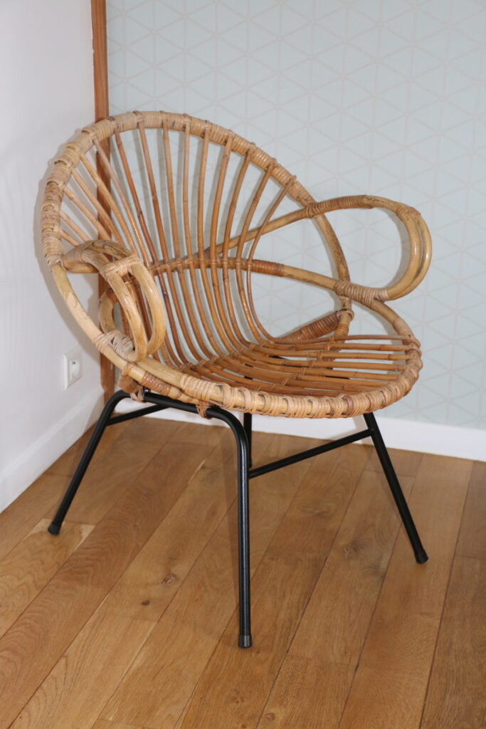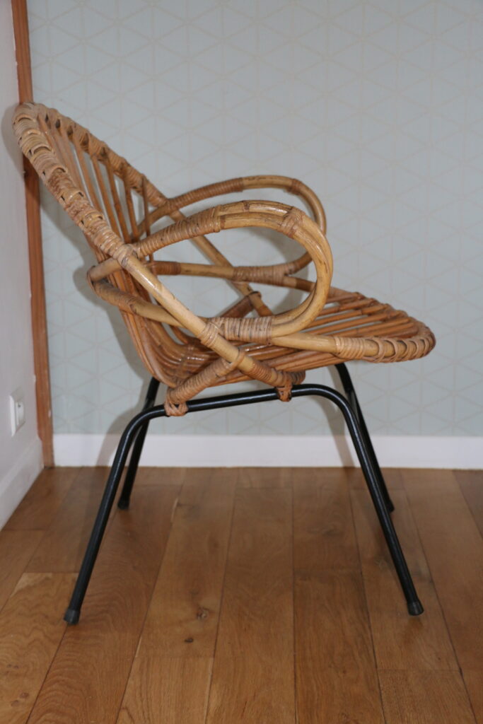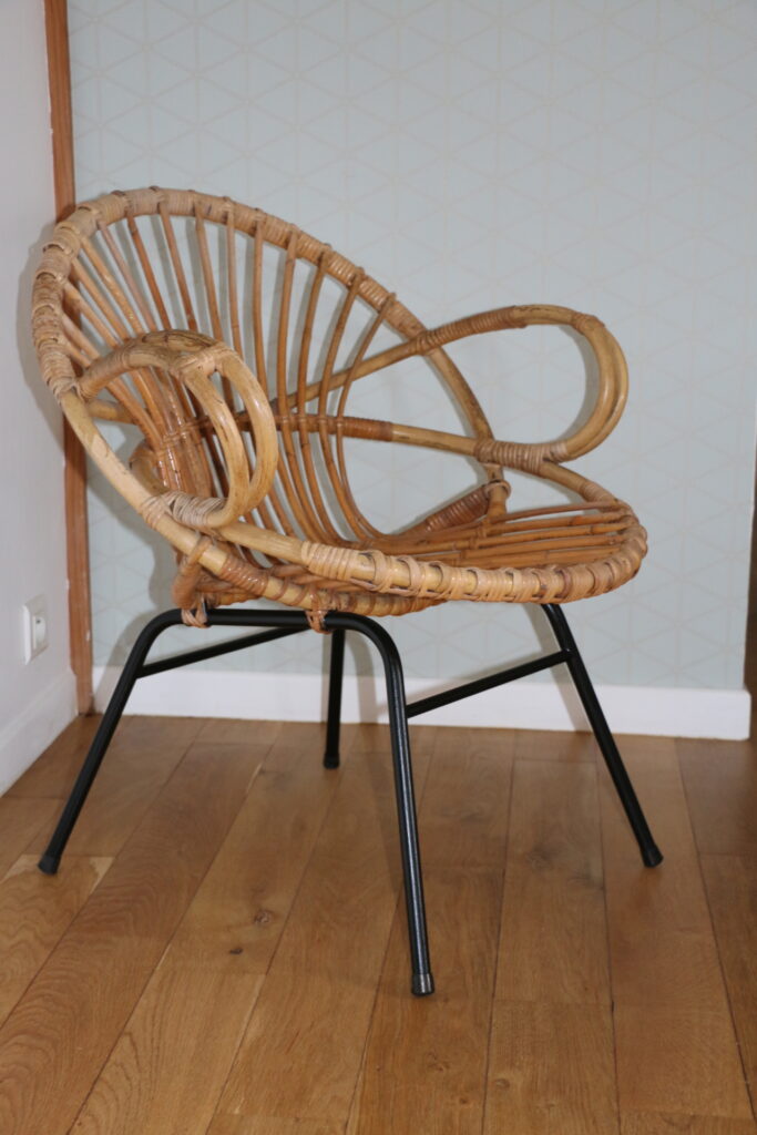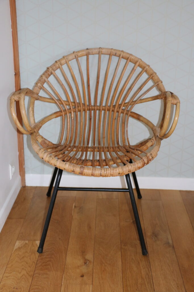 Fauteuil taille adulte en rotin datant des années 50/60