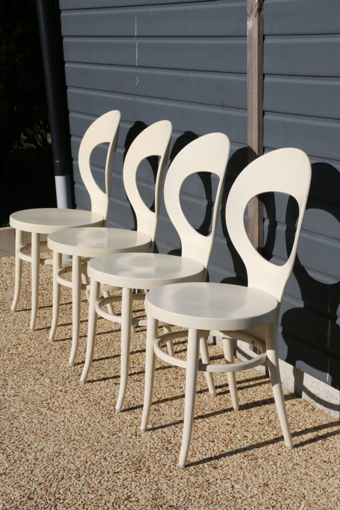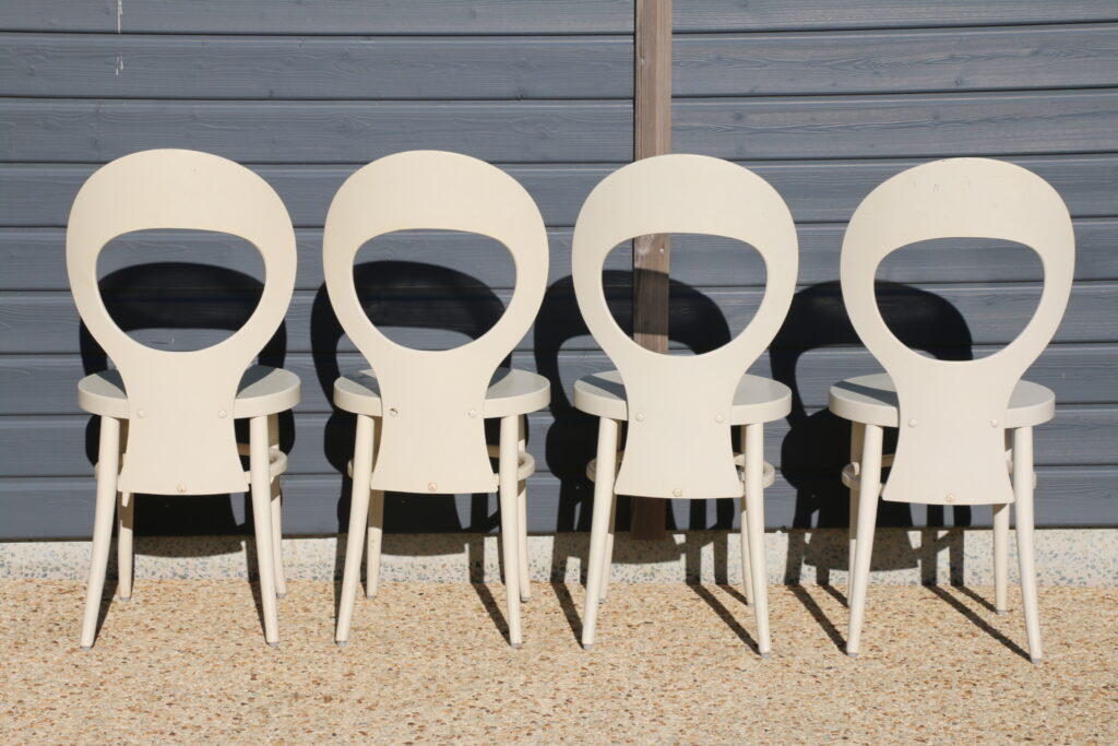 Série de 4 chaises BAUMANN modèle MOUETTE blanches des années 70