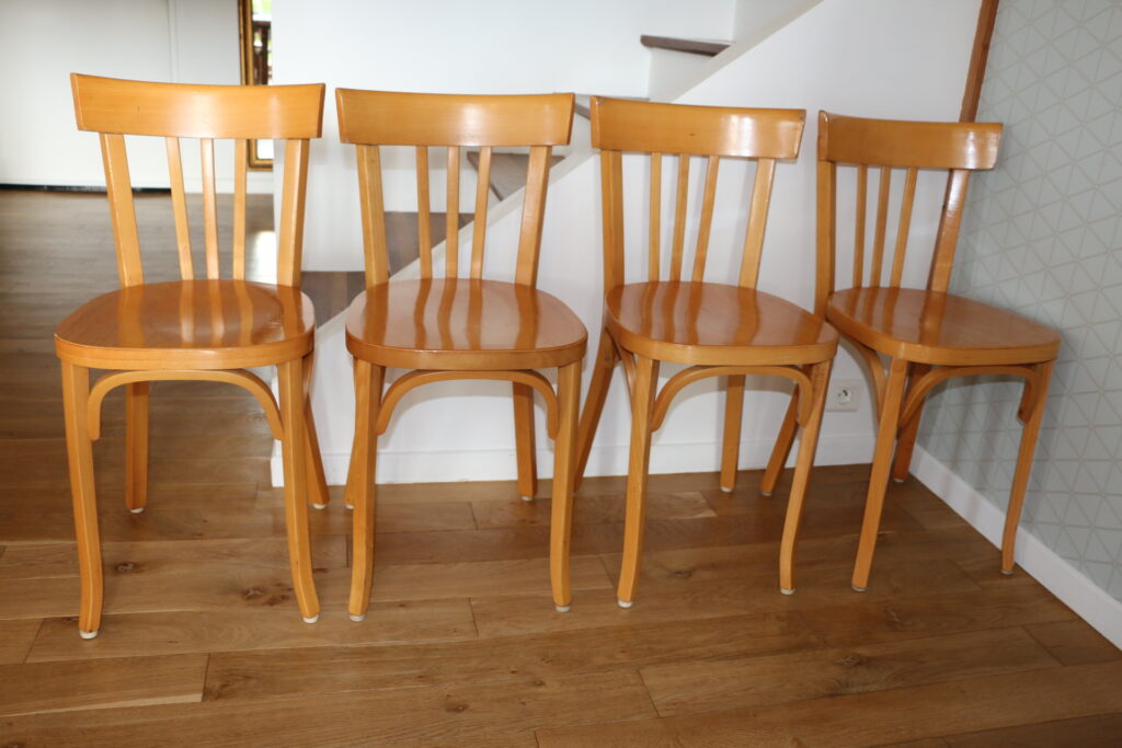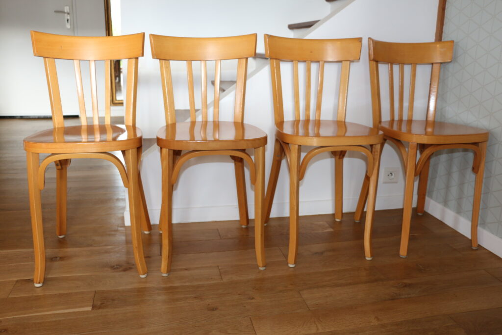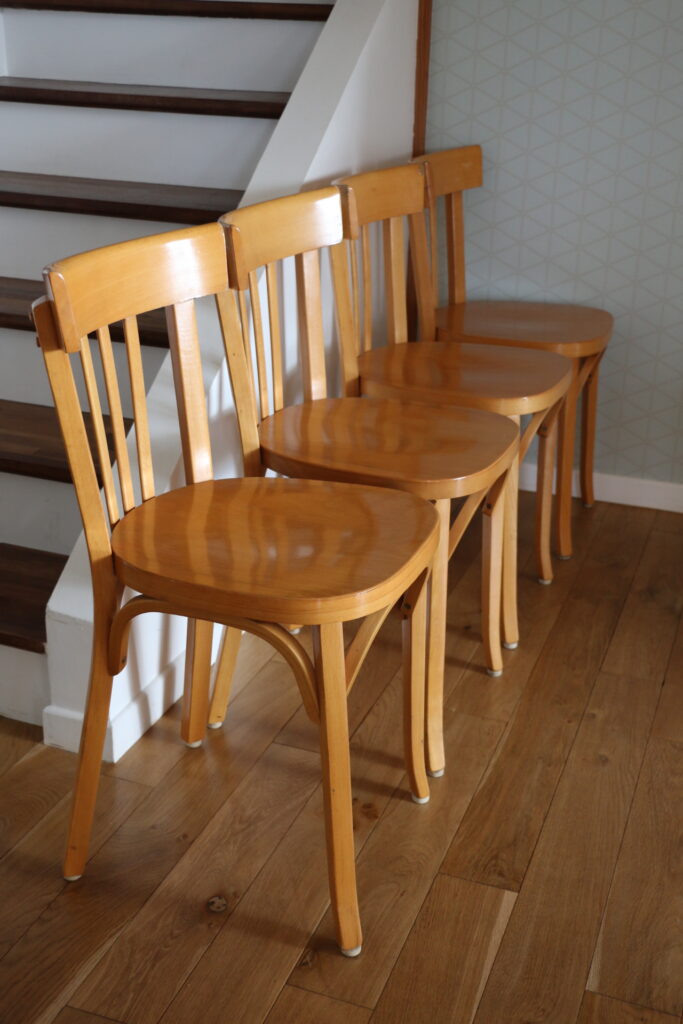 4 chaises Baumann N°31 hêtre clair datant des années 70/80