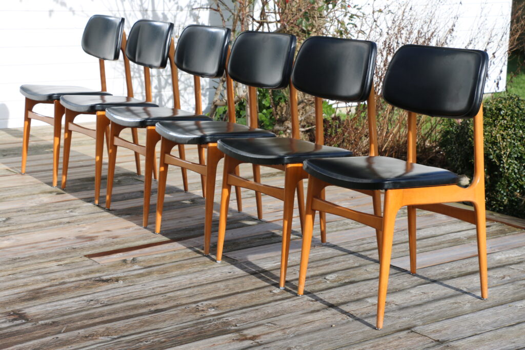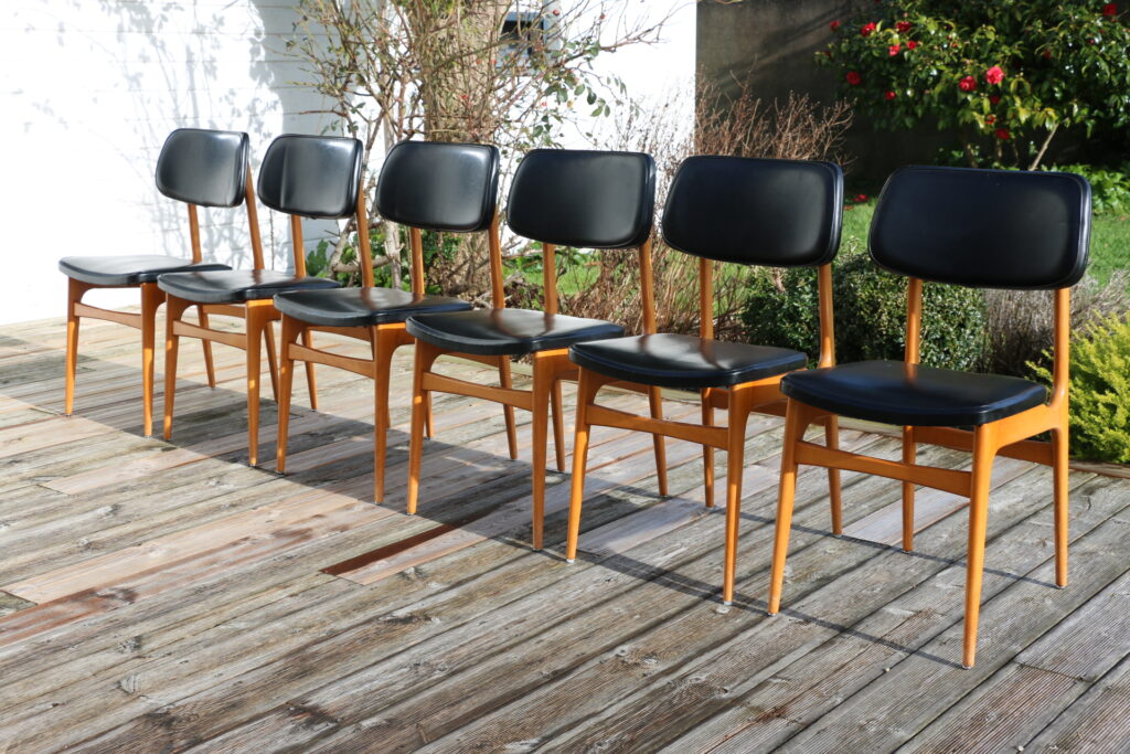 Prix : 650EUR la série de 6 chaises (non vendu séparément)