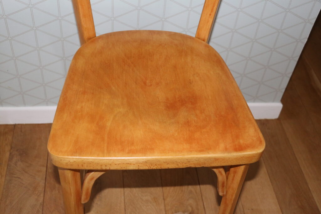 Chaise Baumann dos large N°35 hêtre clair datant des années 50