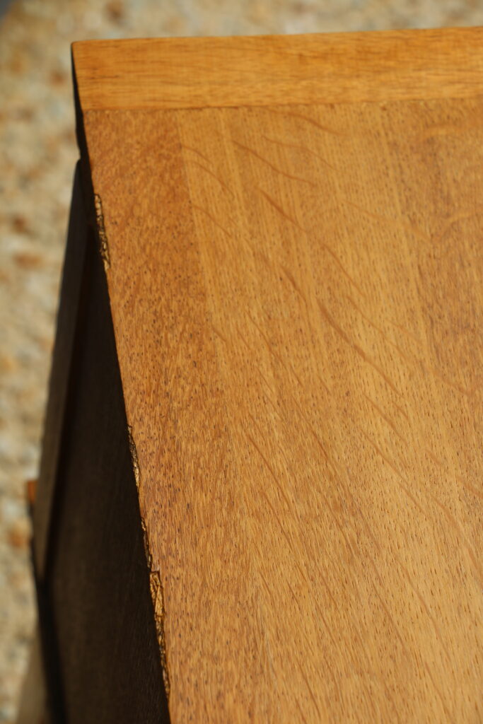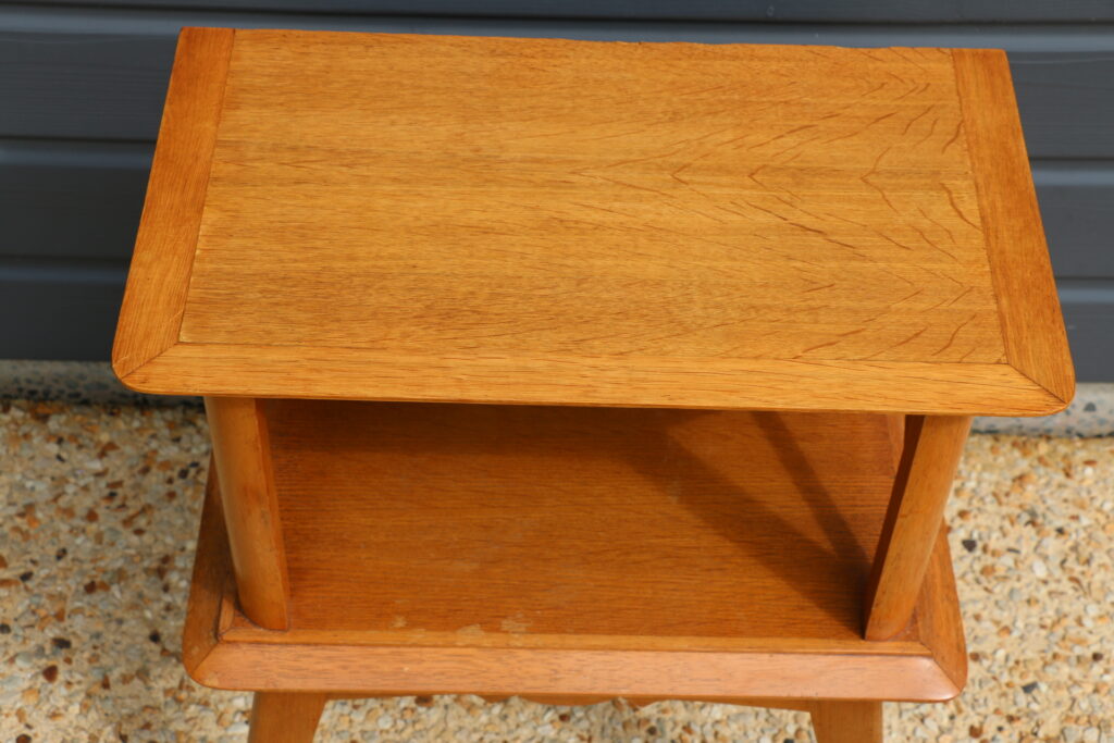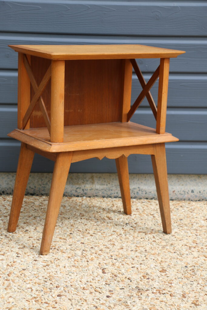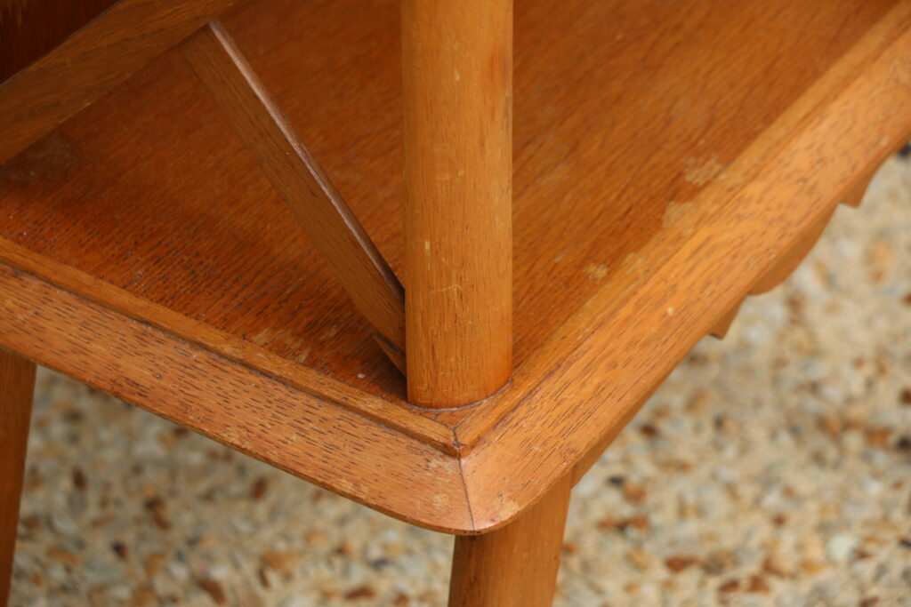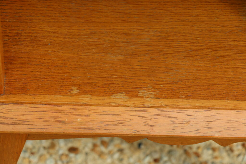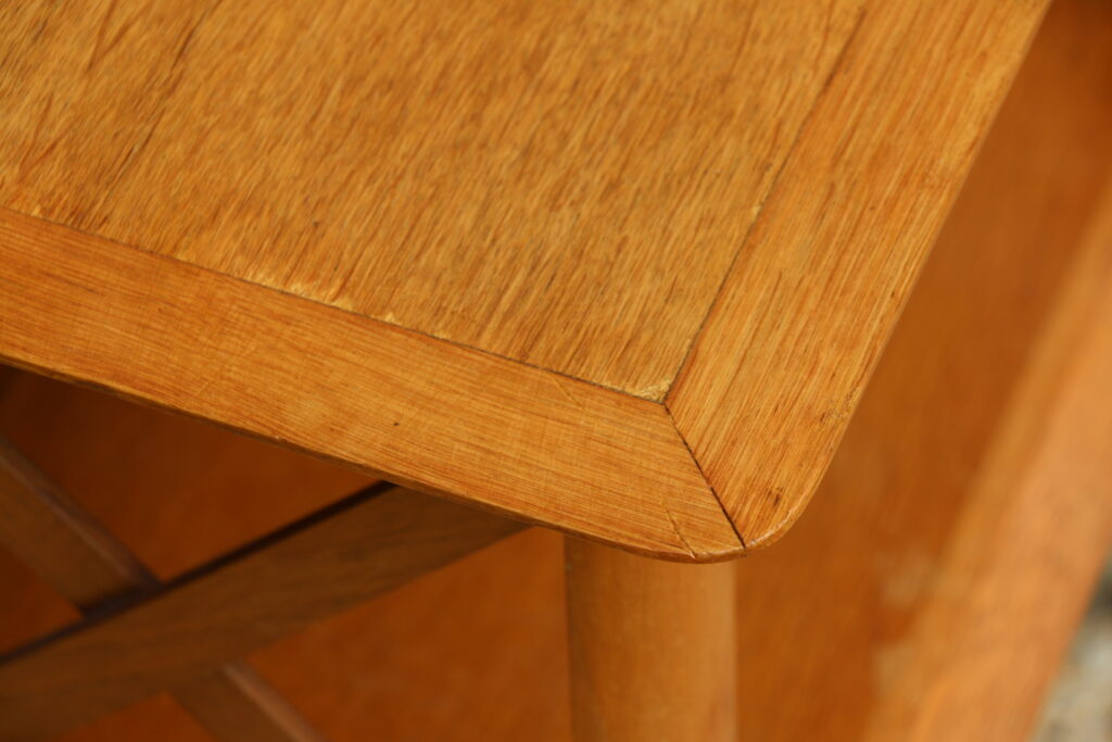 Bon état structurel et cosmétique (vernis d’origine ; quelques traces d’usage très discrètes sur le plateau et quelques discrets manques de placage)