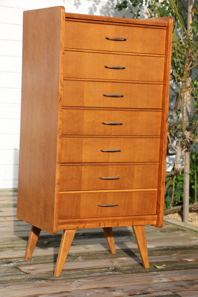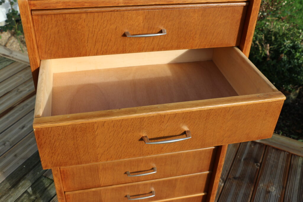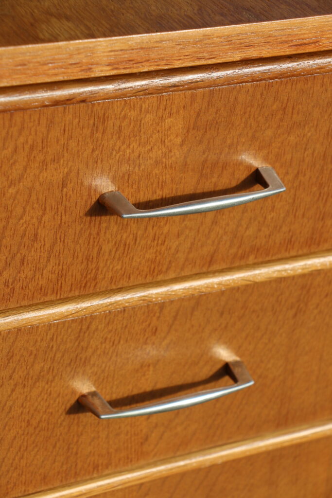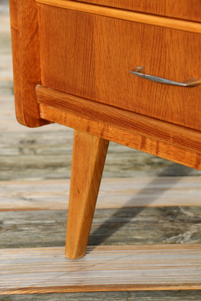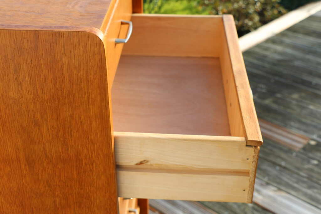 Structure et façade des tiroirs en mélaminé, plaqué chêne et chêne massif