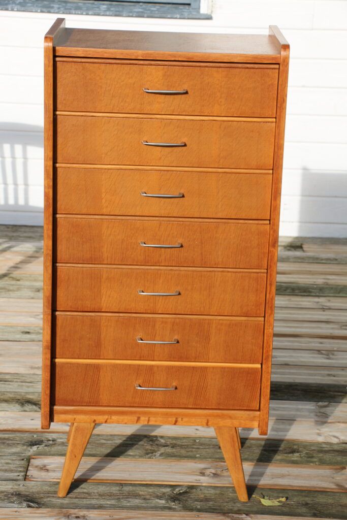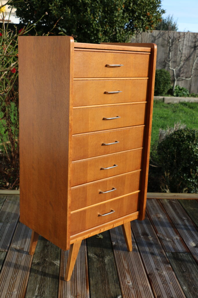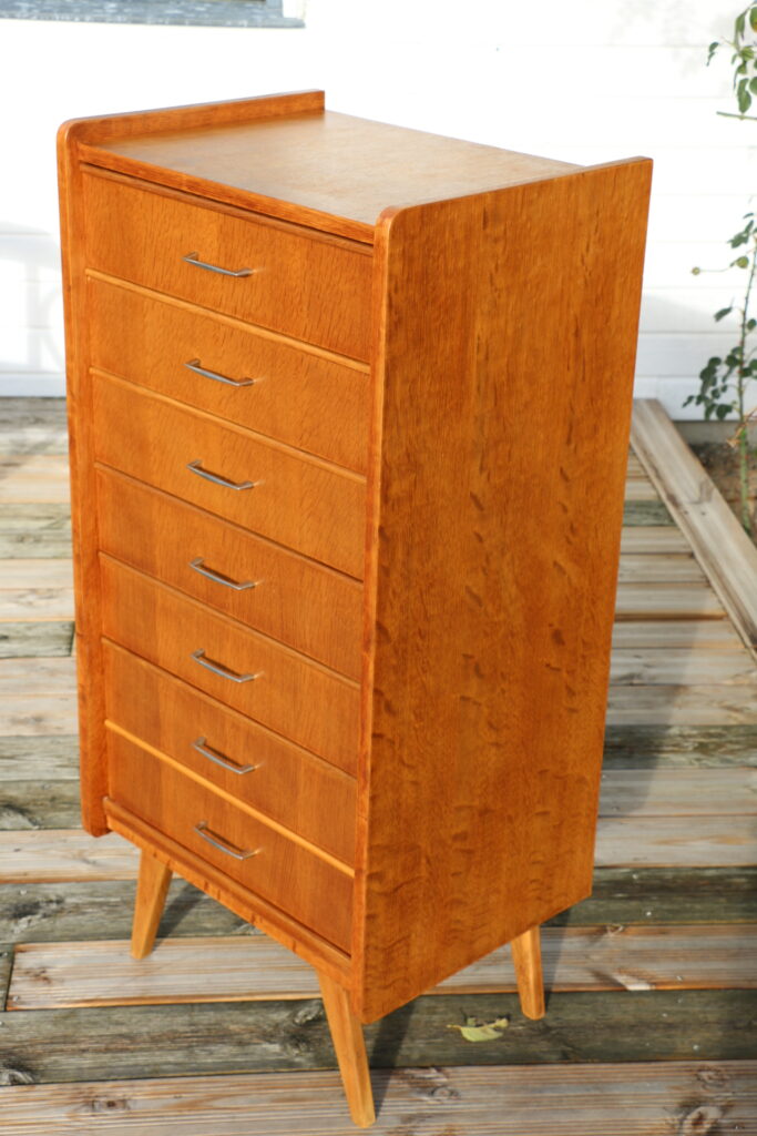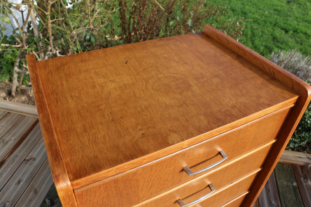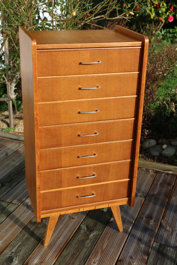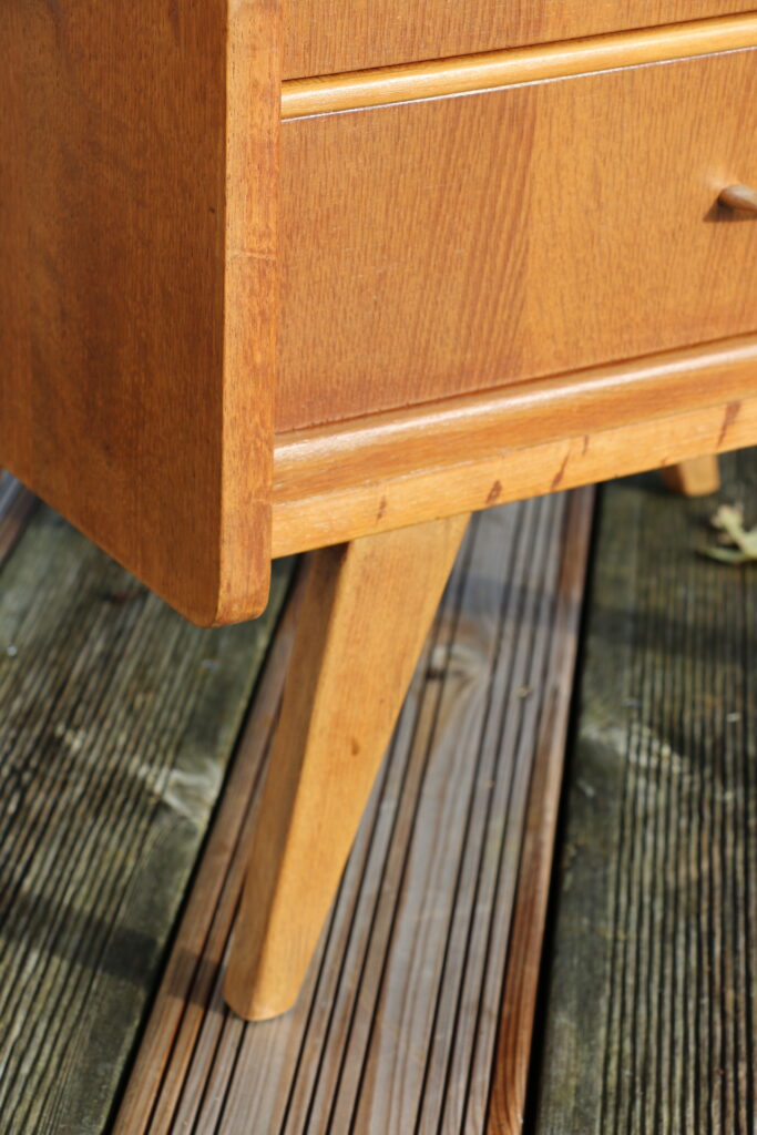 Structure et façade des tiroirs en mélaminé, plaqué chêne et chêne massif