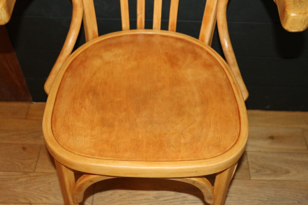 Très bon état structurel ; excellente stabilité ; modèle robuste ; très bon état cosmétique (l’ensemble a été poncé puis vitrifié avec un vitrificateur professionnel aspect mat hêtre clair) ; tampons neufs adaptés à toute surface
