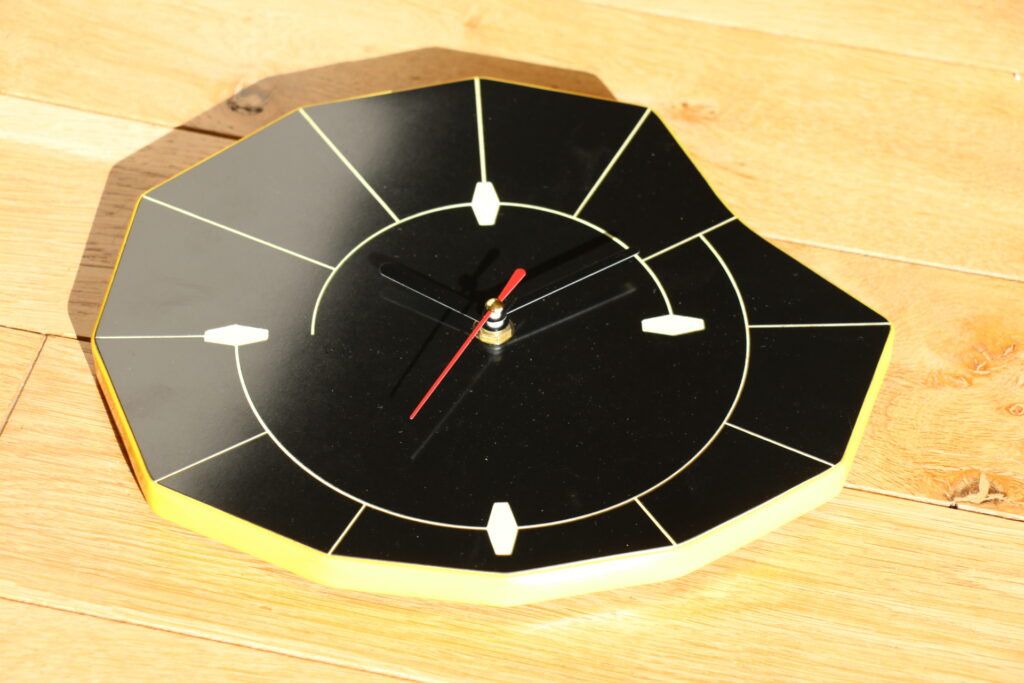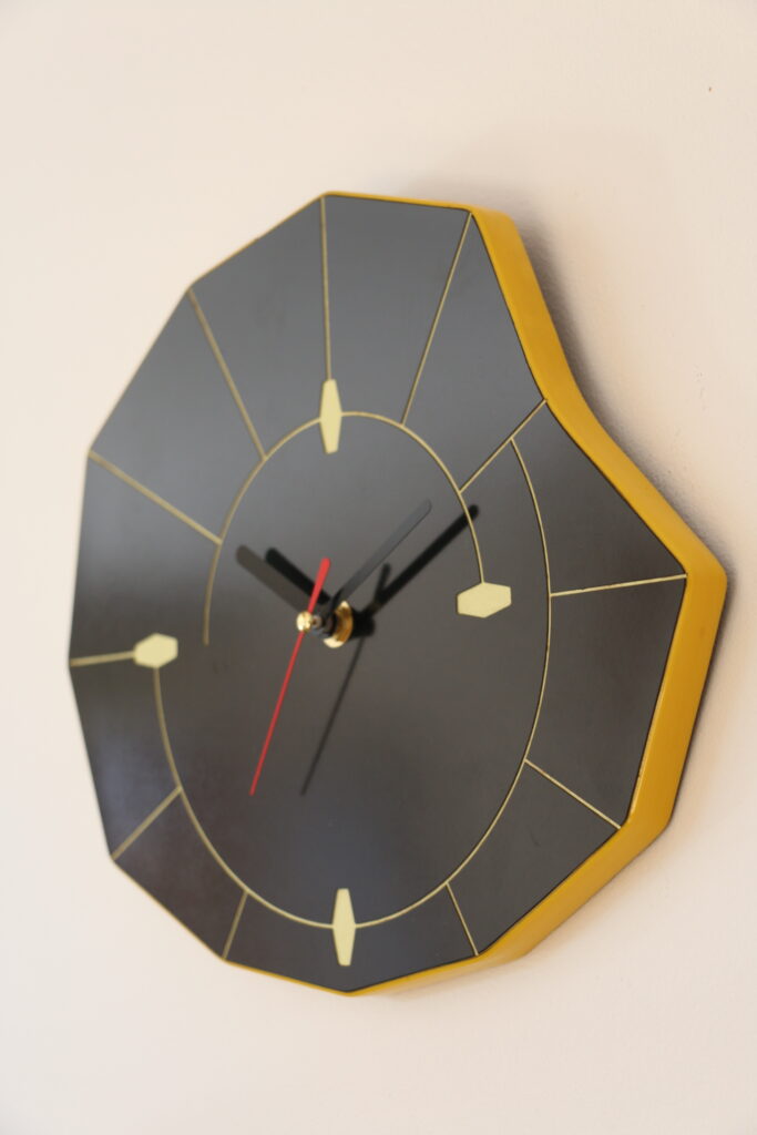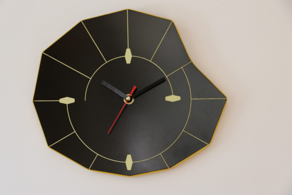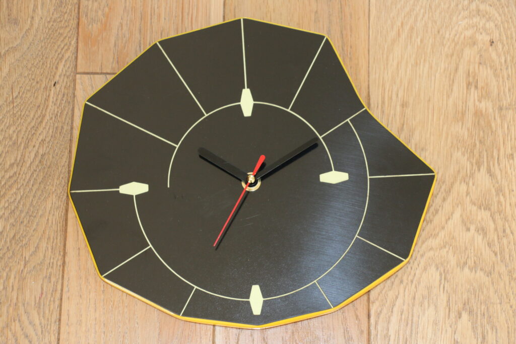 Corps formica noir et jaune ; décor embossed (en relief) ; bordure jaune