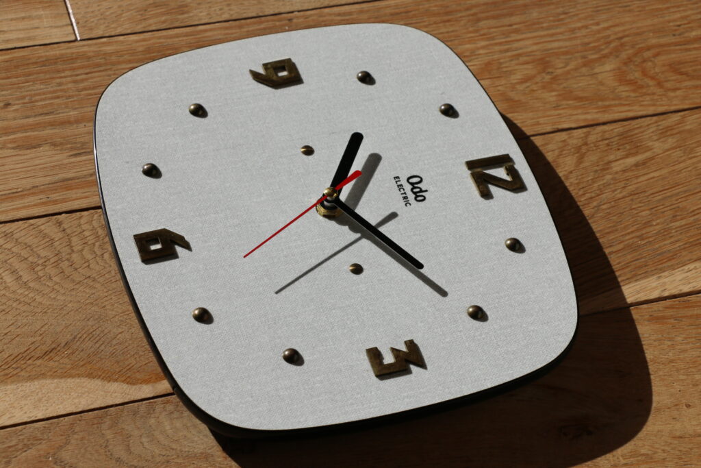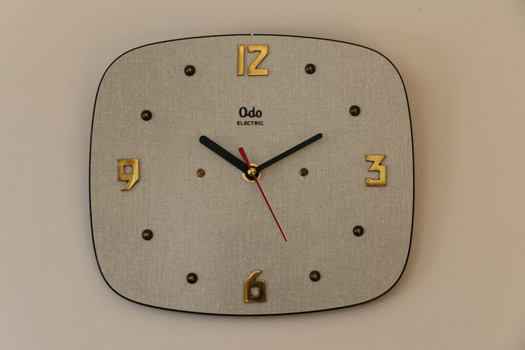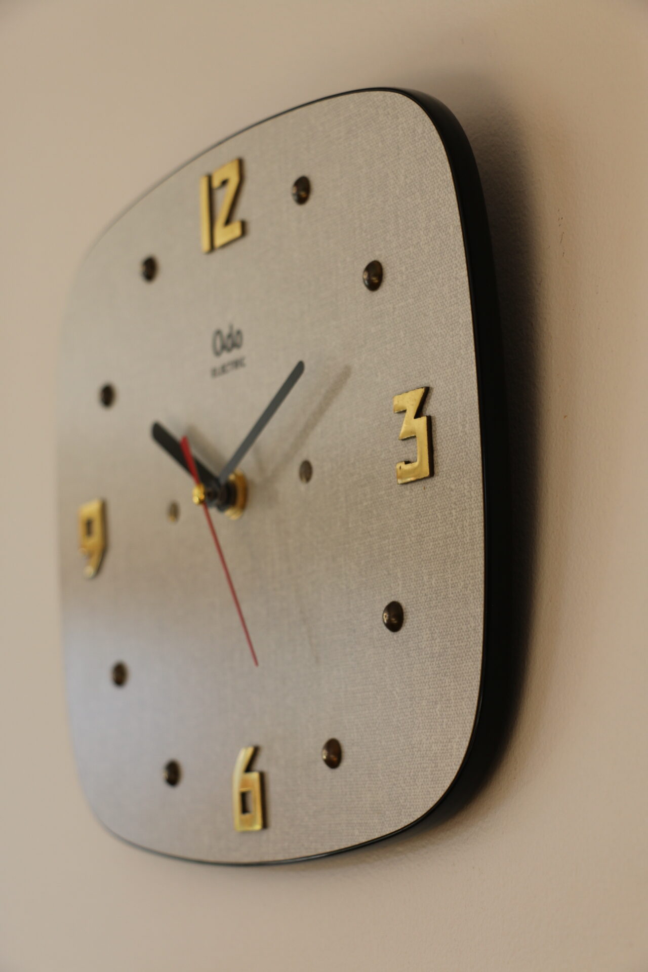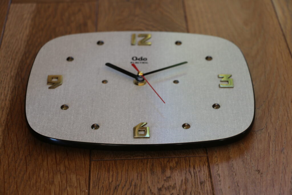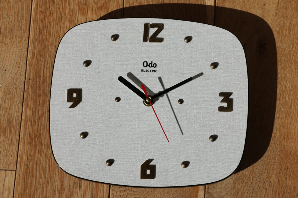 Horloge murale datant des années 60 de forme rectangulaire de la marque Odo