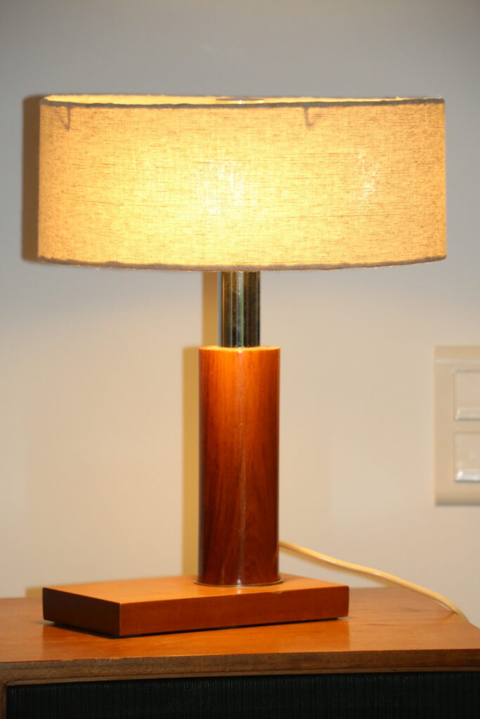 Dimensions : hauteur totale 412mm ; piètement 210*130mm; diamètre de l’abat-jour 325mm; hauteur abat-jour 120mm