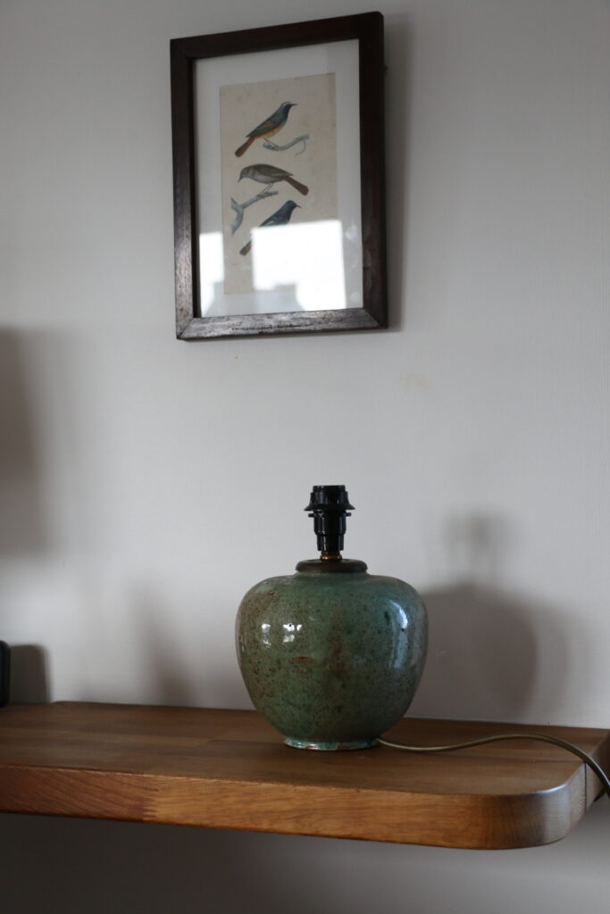 Lampe en bel état équipée d’une douille E14 à vis ; câble électrique avec interrupteur fonctionnel ; céramique signé sous le cache de fixation ; vendu sans abat-jour