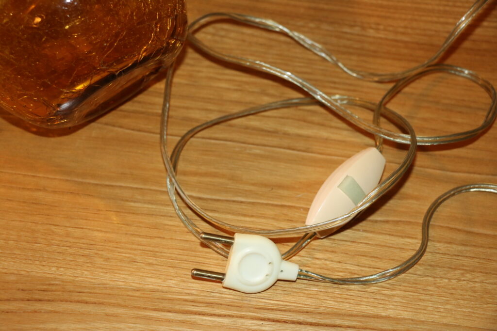 Lampe en bel état équipée d’une douille E27 à baïonnette ; câble électrique avec interrupteur fonctionnel d’origine ; vendu avec abat-jour