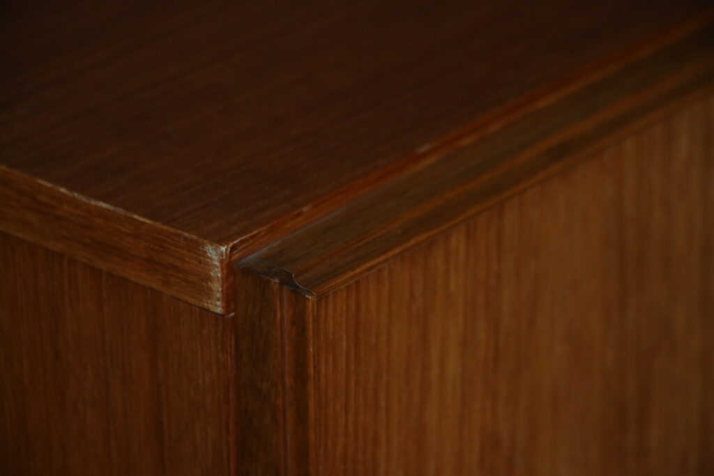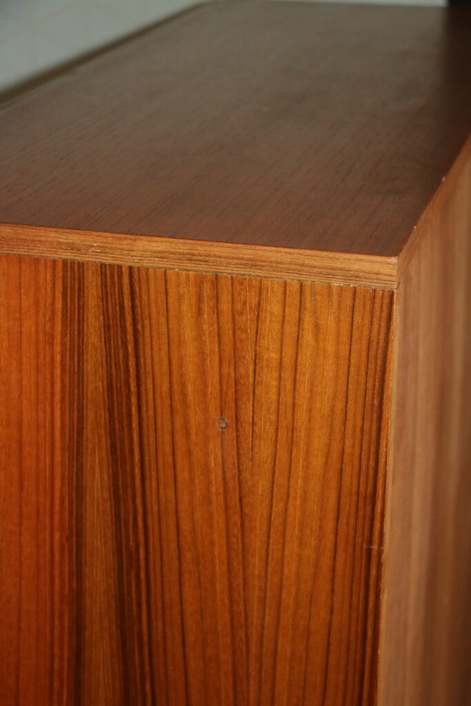 Bel état général (une rayure sur le plateau supérieure ; 1 trou rebouché de chaque côté sur la paroi latérale)