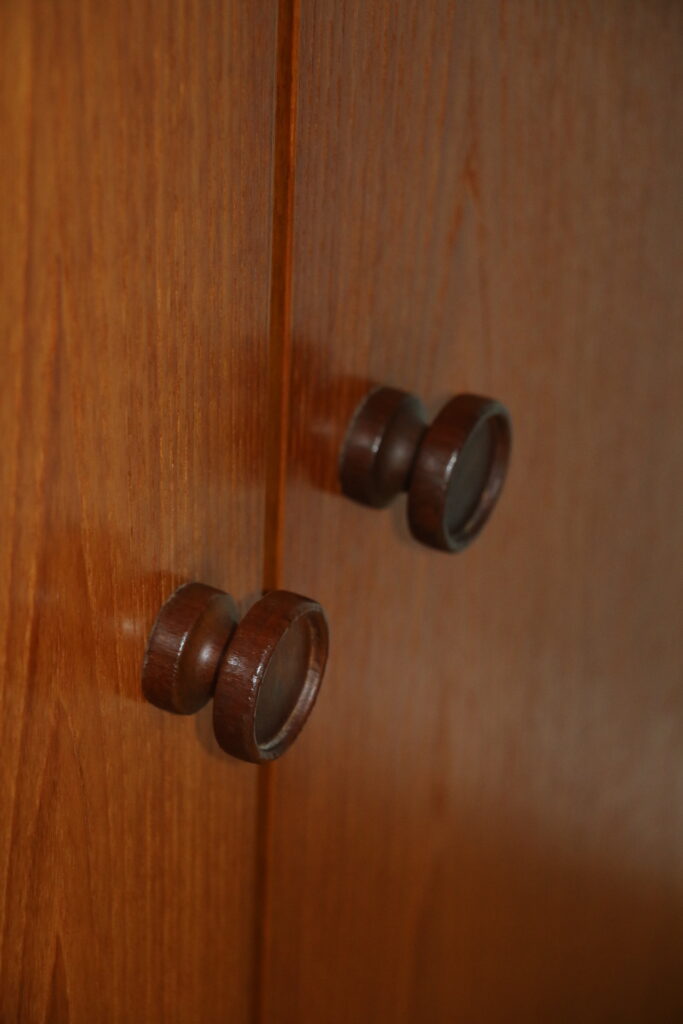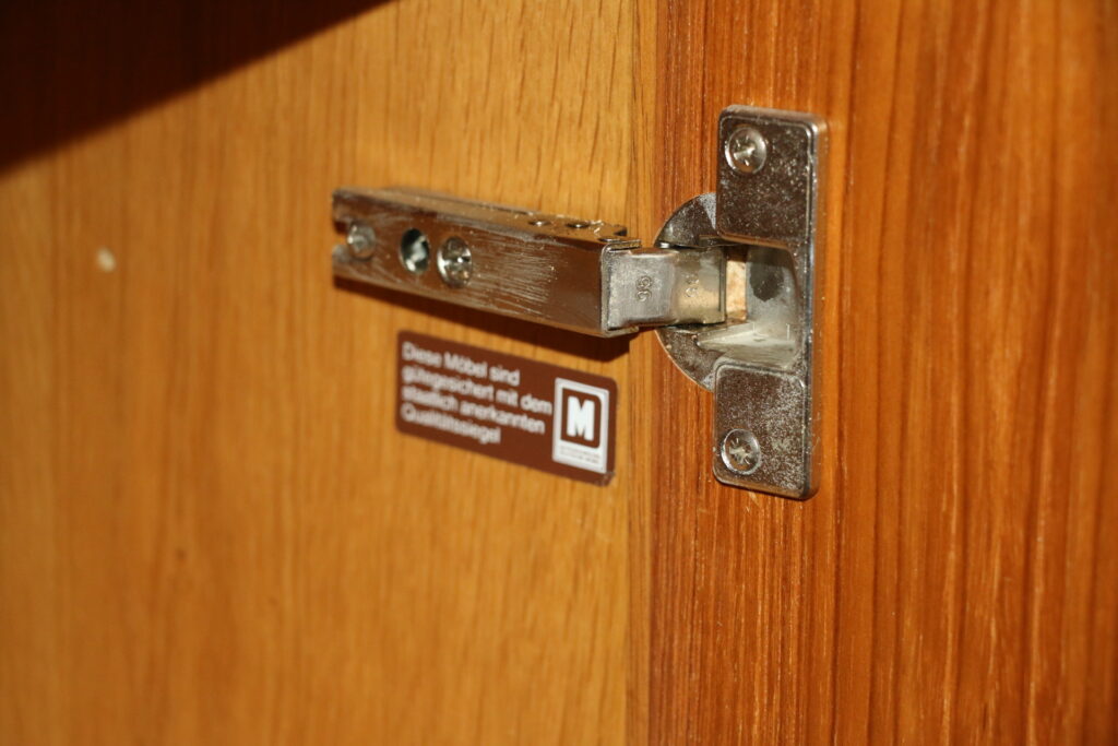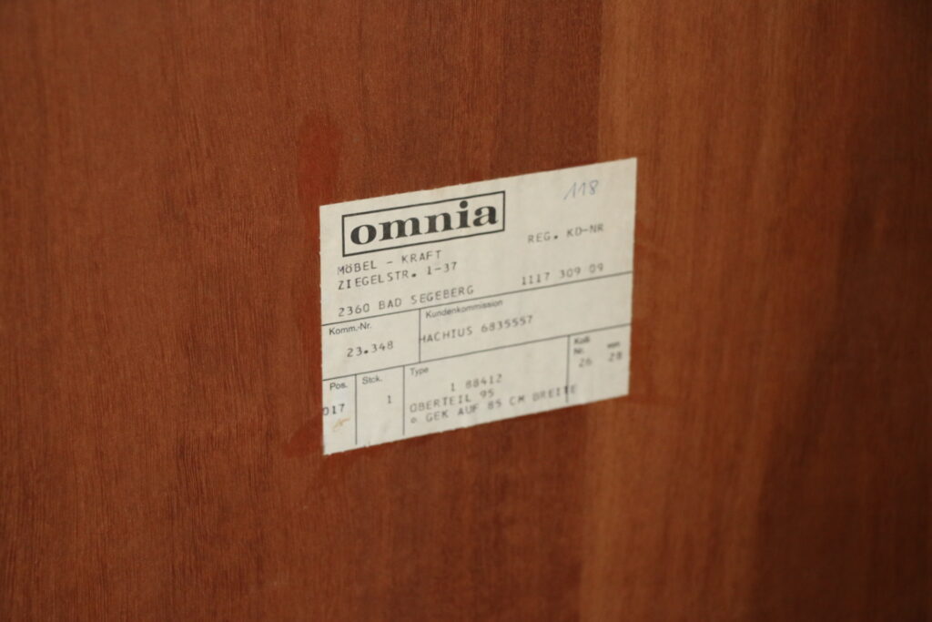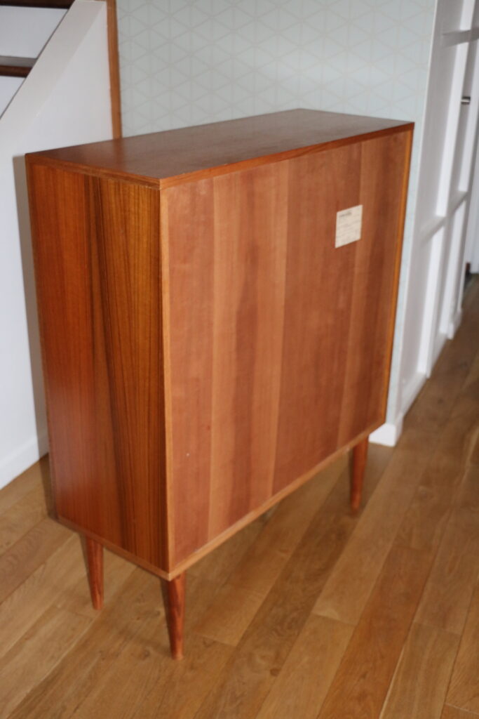 Fabrication allemande. Modèle peu encombrant en profondeur, ligne épurée et élégante ; belle capacité de rangement intérieure. Doté de deux étagères de rangement réglables en hauteur