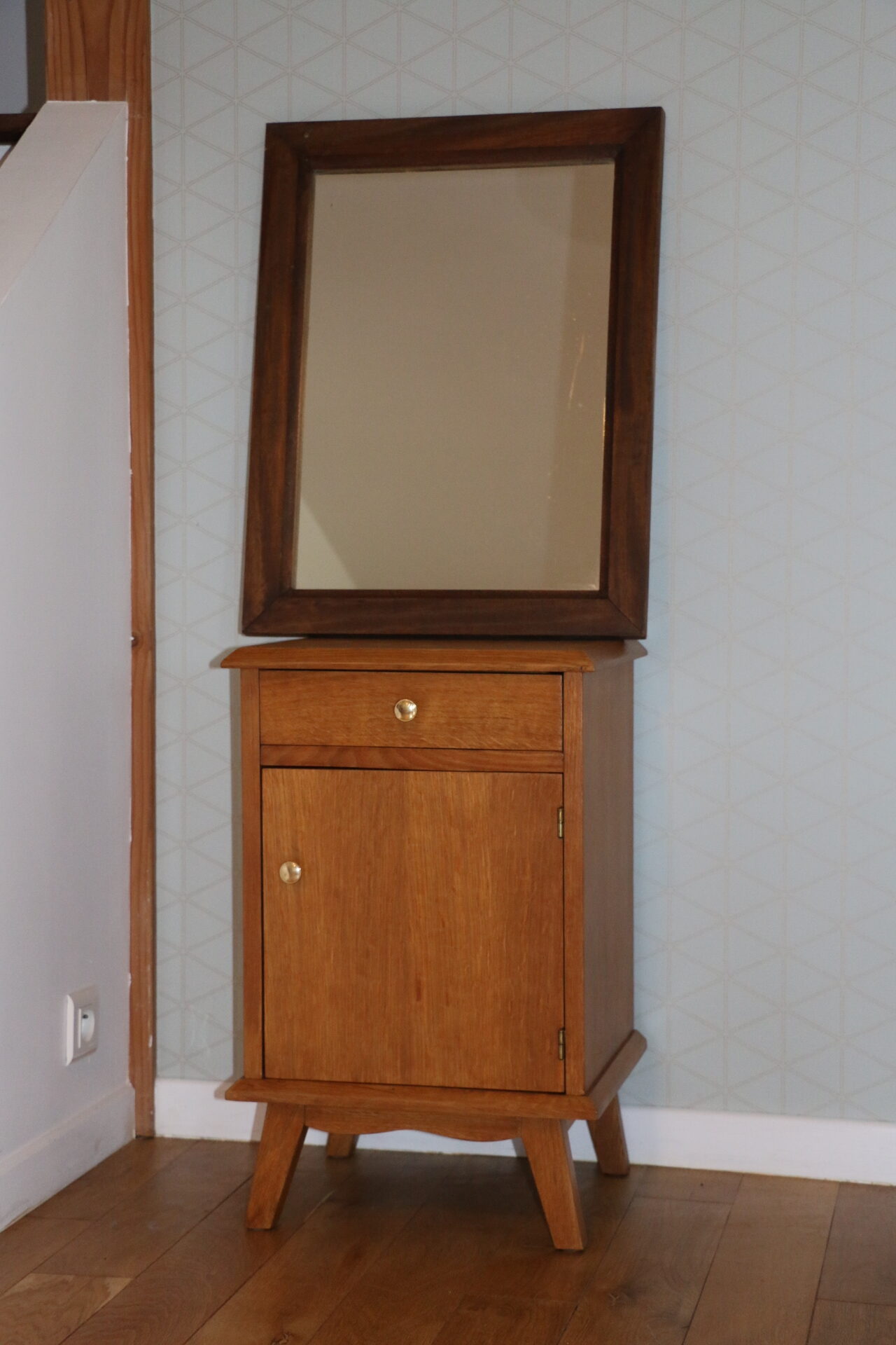 Structure en chêne massif, glace ancienne ; montage arrière avec clous et papier de protection (pas de parquet ; la glace se trouve donc directement derrière le papier) ; pas de système de fixation (peut-être ajouté sur demande)