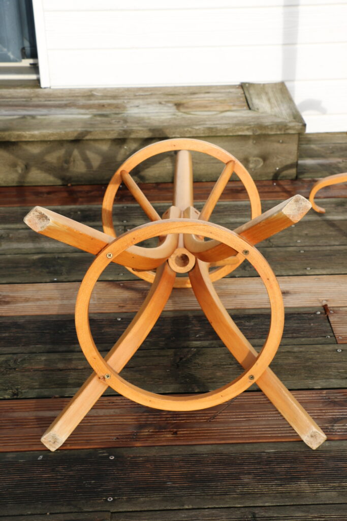 Coloris hêtre clair ; se démonte en 2 (renfort avec tige d’acier dans cette zone)