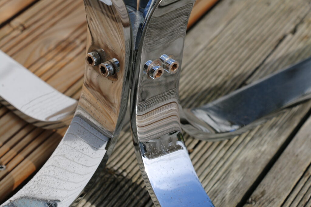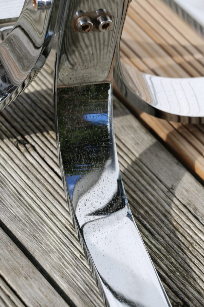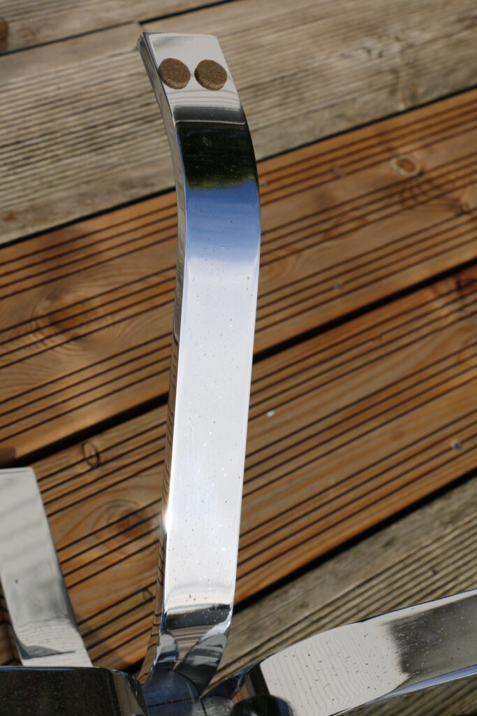 Bon état général (quelques traces assez discrètes sur le plateau ; sautes légères de chrome sur la structure peu visibles une fois le plateau posé)
